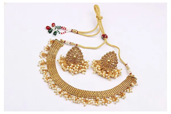 1 Gm Gold Plated Leheriya Pearl Patta Necklace With Adjustable Thread And D..More