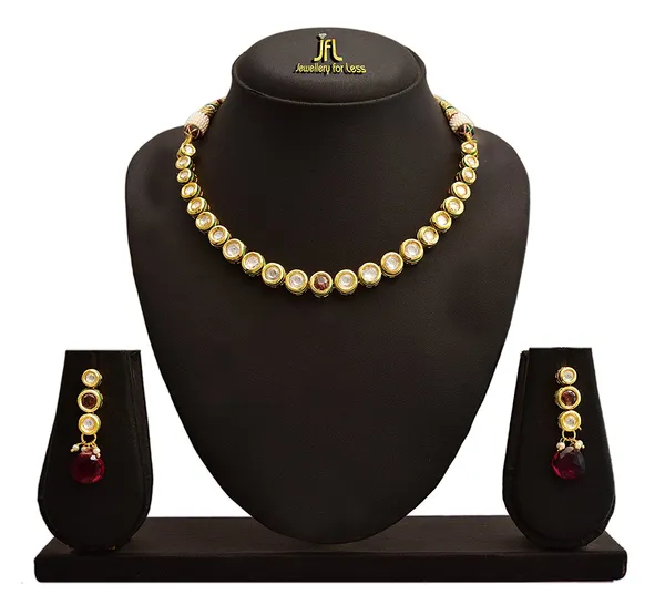 JFL -Traditional Ethnic One Gram Gold Plated Real Kundan Designer Necklace Set