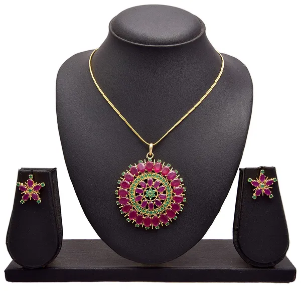 JFL - Traditional Ethnic One Gram Gold Plated Stone Designer Pendant Set With Earring