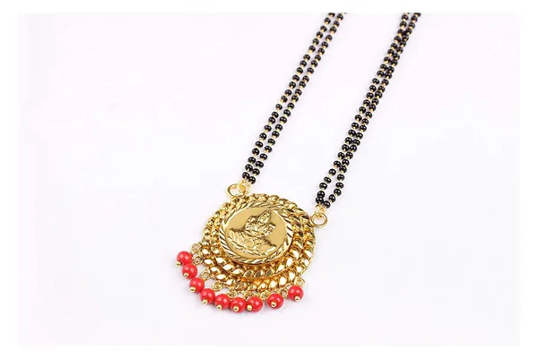 1 Gold Plated Double Goddess Laxmi Mangalsutra With Black Beaded Chain
