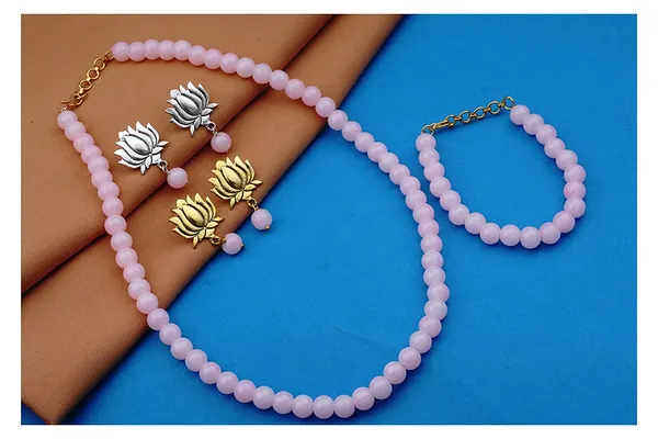 Baby Pink Combo Of Necklace, Bracelet And 2 Pairs Of Earrings