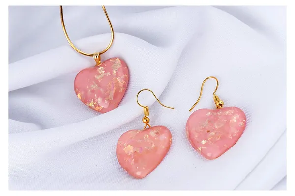 Baby Pink Gold Plated Glitter Heart Pendant Set