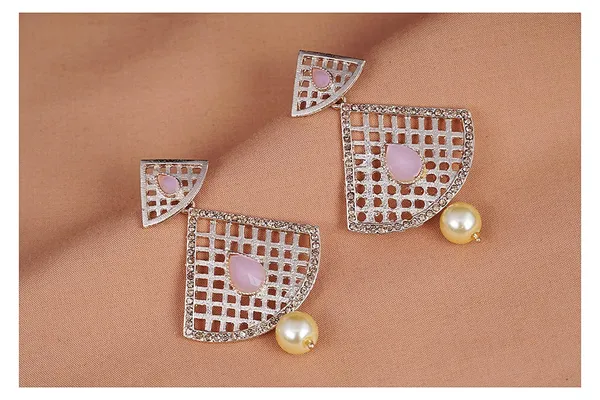 Baby Pink Gold T1 Triangle Design Jali Work And Polki St1 Studded Pearl Dro..More