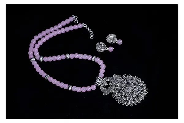 Baby Pink Silver Plated Laye Peacock Baby Onyx St1 Necklace Set