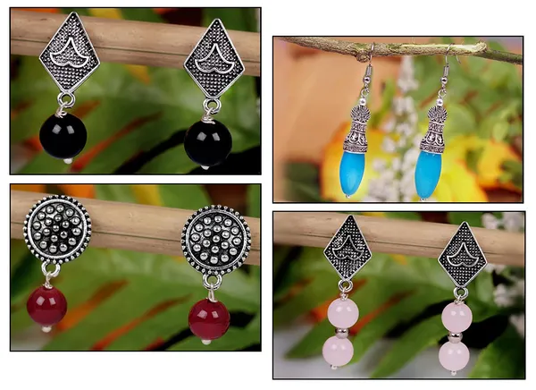 Baby Pink,Sky Blue,Black,Maroon Oxidised Silver Plated Handmade Beaded Mult..More