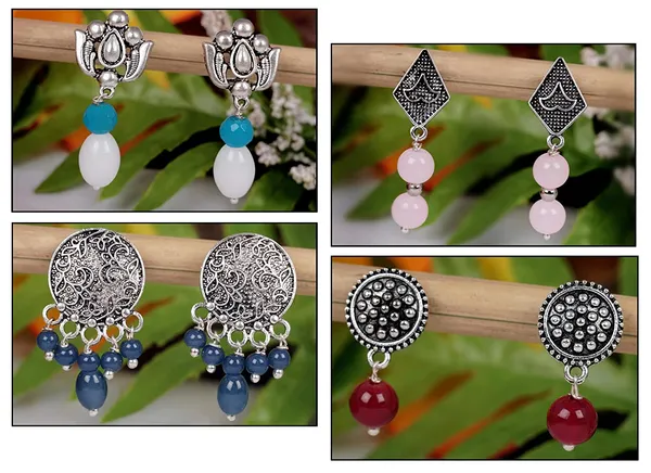 Baby Pink,White,Royal Blue,Maroon Oxidised Silver Plated Handmade Beaded Mu..More