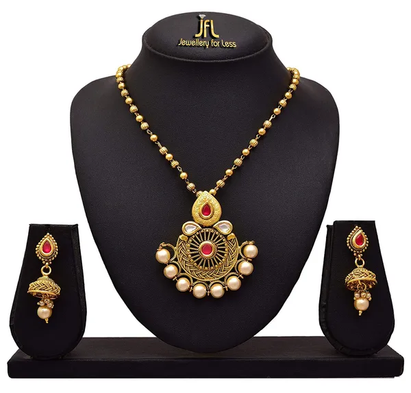 Beautiful Pearl Embedded Pendant With Bead Ball Chain & Earring Set For Wom..More