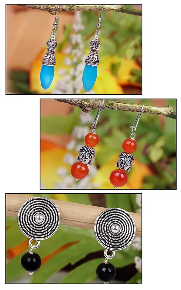 Black, Green, Red Contemporary Oxidised Silver Plated Handmade Beaded Dangl..More