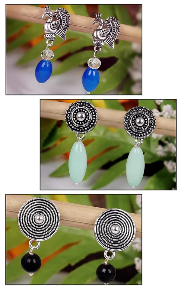 Black, Mint Green, Blue Fancy Oxidised Silver Plated Handmade Beaded Dangle..More