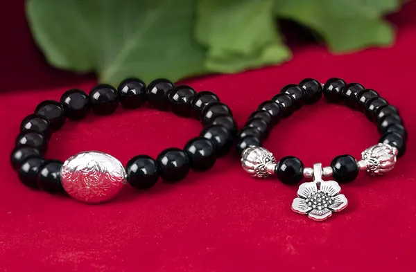 Black And Silver Black Onyx St1 With Silver Flower Charm And Black Onyx St1..More