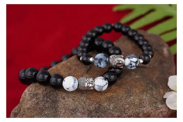 Black Combo Of Black St1 With German Silver Buddha Handmade Stretchable Rak..More