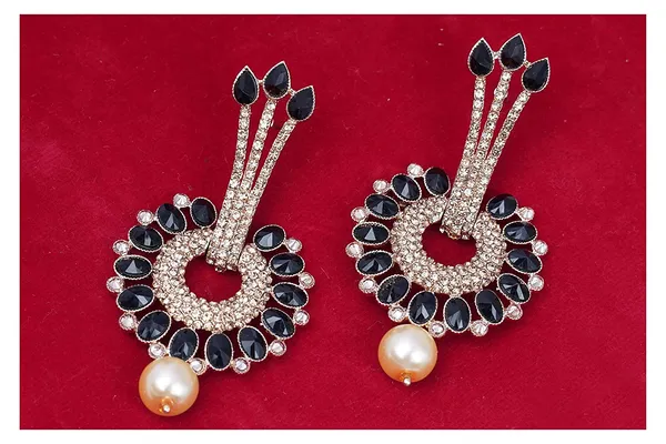 Black Fashionable Gold T1 Small Diamond And Oval Shape Polki St1 With Pearl..More