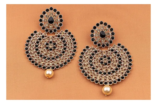 Black Gold T1 Austrian Diamond And Polki St1 Studded With Pearl Drop Chandb..More