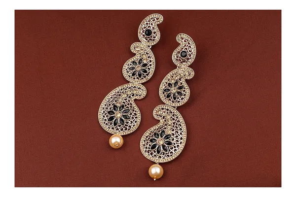 JFL - Jewellery for Less Gold Tone Cz LCD Diamond and Polki Stone Studded Long Dangler Earrings Women love jewellery specially Fashions jewellery adore a women You can wear this Earrings on all occasion This beautiful piece of jewellery will enhance your beauty and compliment you Make your moment memorable with this high quality fashion earrings This earrings women’s wear on like ring ceremony, wedding and any traditional festive time, daily wear,office wear This pretty earring pair makes your look impressive for any occasion It will make your moment memorable with this range This designed Earrings will go well matching With Any Attire Like dress,saree This Earrings will definitely be a treasured inclusion in every woman's jewellery collection new range of fashion earrings - Designer, Classy, Charming, Elegant, Appealing, Affordable, Casual as well as party wear, Pocket-friendly, Superb quality, High quality plating, Skin friendly, Non-allergic, Attractive, Mesmerising, etc