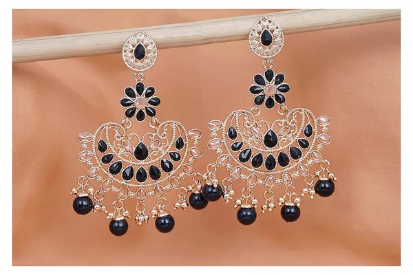 Black Gold T1 Filigree Design Polki St1 Chandbali Earring