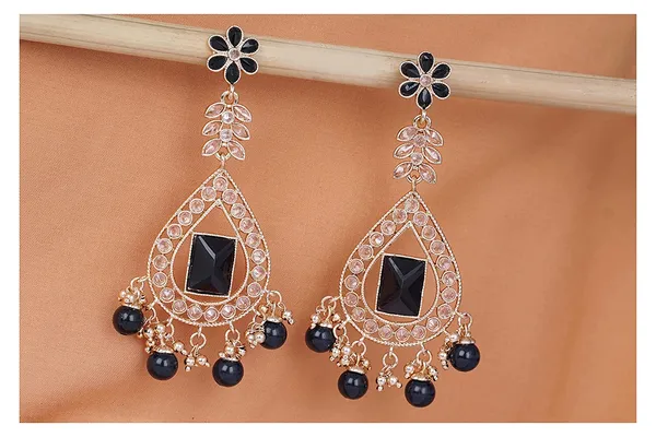 Black Gold T1 Floral Rectangle Crystal And Polki St1 Drop Shape Earring /Gi..More