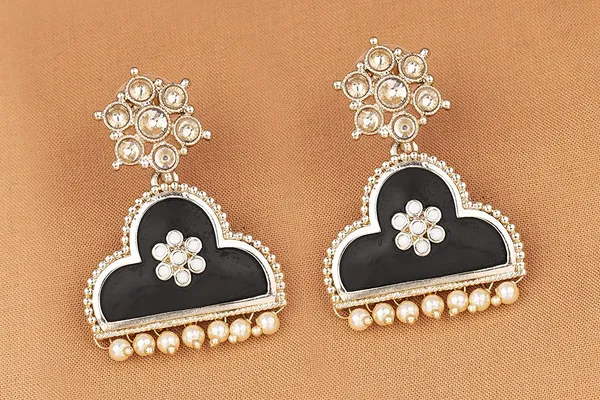 JFL - Jewellery for Less Gold Tone Floral Scallop Shape Meenakari Painted Cz LCD Stone Studded with Drop Pearl Dangler Earring Women love jewellery specially Fashions jewellery adore a women You can wear this Earrings on all occasion This beautiful piece of jewellery will enhance your beauty and compliment you Make your moment memorable with this high quality fashion earrings This earrings women’s wear on like ring ceremony, wedding and any traditional festive time, daily wear,office wear This pretty earring pair makes your look impressive for any occasion It will make your moment memorable with this range This designed Earrings will go well matching With Any Attire Like dress,saree This set will definitely be a treasured inclusion in every woman's jewellery collection new range of fashion earrings - Designer, Classy, Charming, Elegant, Appealing, Affordable, Casual as well as party wear, Pocket-friendly, Superb quality, High quality plating, Skin friendly, Non-allergic, Attractive, Mesmerising, etc
