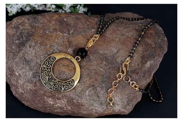 Black Oxidise Gold Plated Round Pendant Mangalsutra With Earring