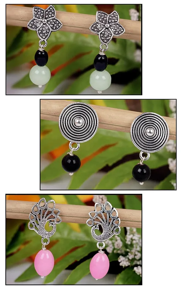 Black Pink, Mint Green Contemporary Oxidised Silver Plated Handmade Beaded ..More