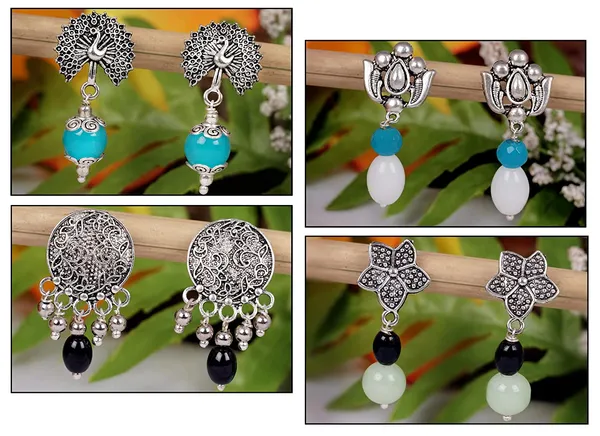Black,Sky Blue,Mint Green,White Oxidised Silver Plated Handmade Beaded Mult..More