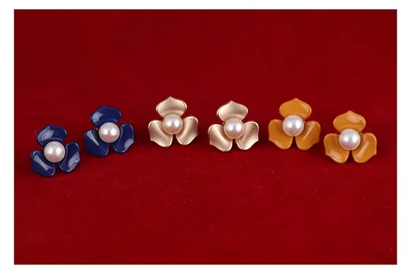 Blue, Gold, Mustard Yellow Combo Of 3 Floral Pearl Stud Earrings