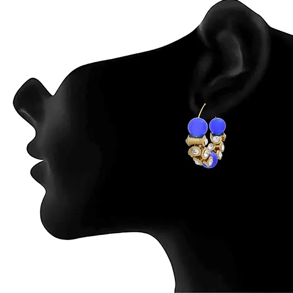 Blue 1 Gm Gold Plated Bead Diamond Earrings