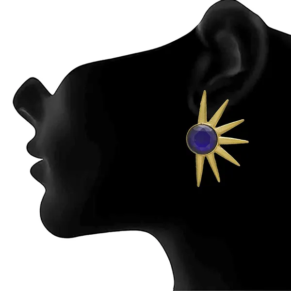 Blue 1 Gm Gold Plated Blue St1 Sun Design Earrings