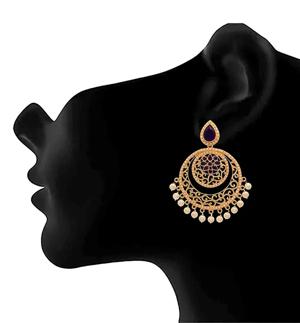 Blue 1 Gm Gold Plated Pearl Drop Chandbali Earring