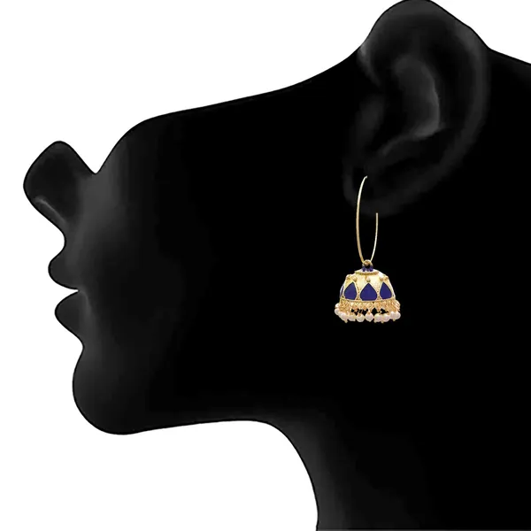 Blue 1Gm Gold Plated Pearls Bali Jhumka Earrings