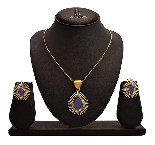Blue Blue St1 Gold Plated Pendant With Chain & Earrings