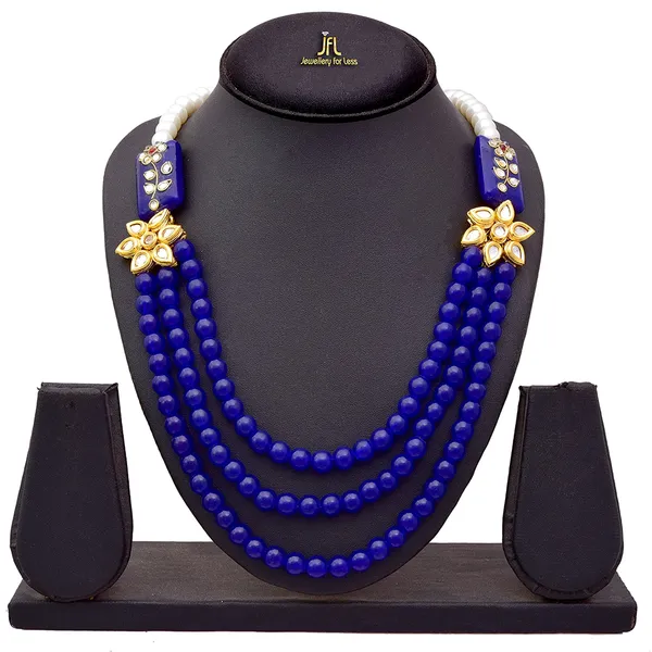Blue Floral Flower 1 Gm Gold Plated Blue Bead Kundan Pearl Necklace