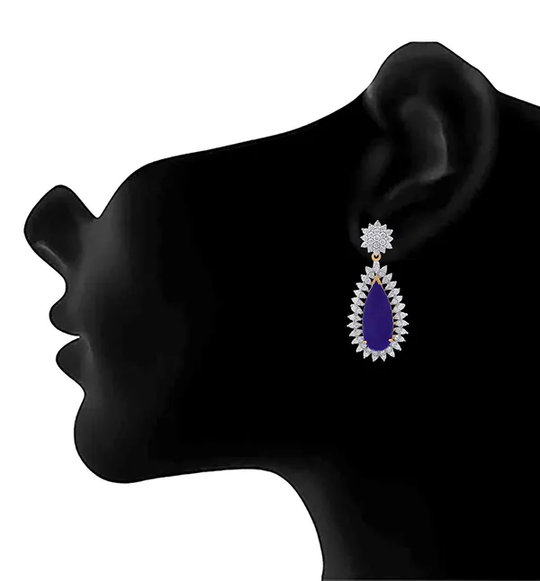 Blue Fusion 1 Gm Gold Plated Cz American Diamond Blue Earrings