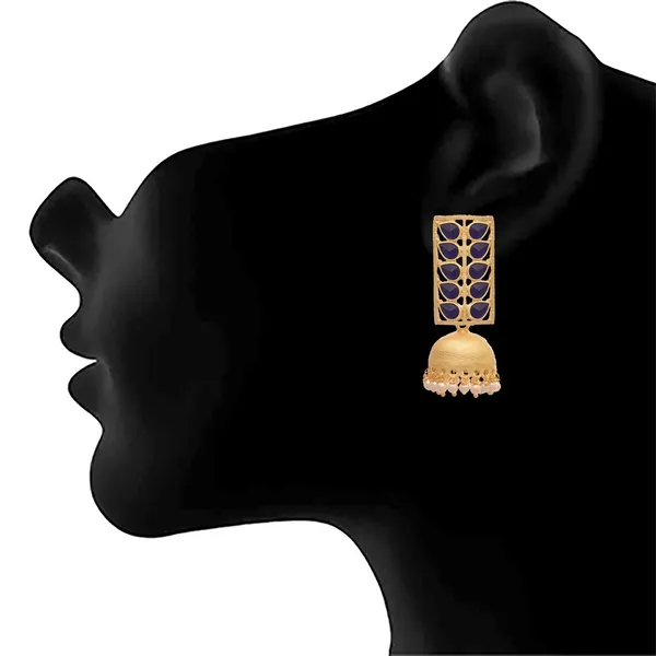 JFL - Traditional Ethnic Fusion One Gram Matt Gold Plated Blue Designer Earring & Girls
