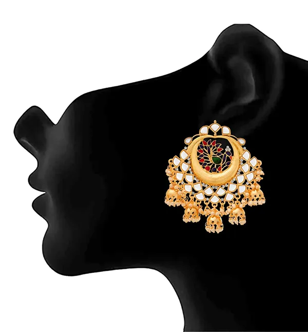 JFL - Traditional Ethnic One Gram Gold Plated Meenakari Kundan & Pearl Designer Earring & Girls