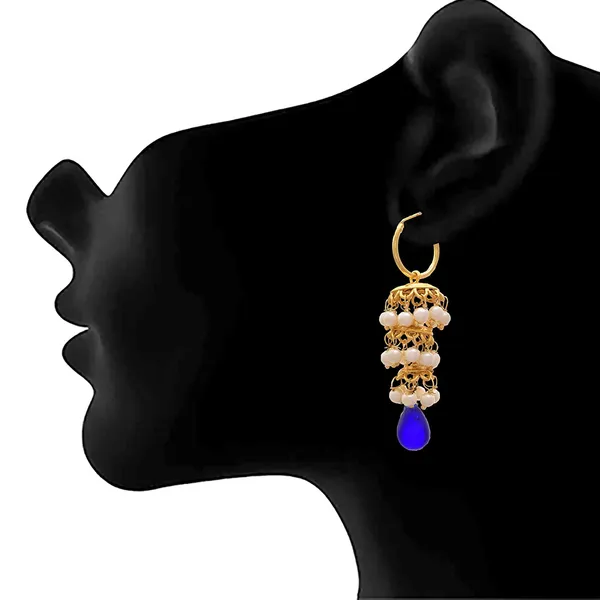 Blue White Pearl 1 Gm Gold Plated Jhumki With St1 Danglers