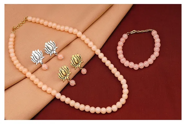 Cantaloupe Orange Combo Of Necklace, Bracelet And 2 Pairs Of Earrings