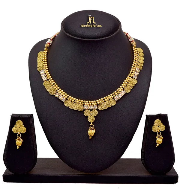 Champagne 1 Gm Gold Plated Champagne Cz American Diamond Necklace Set With ..More