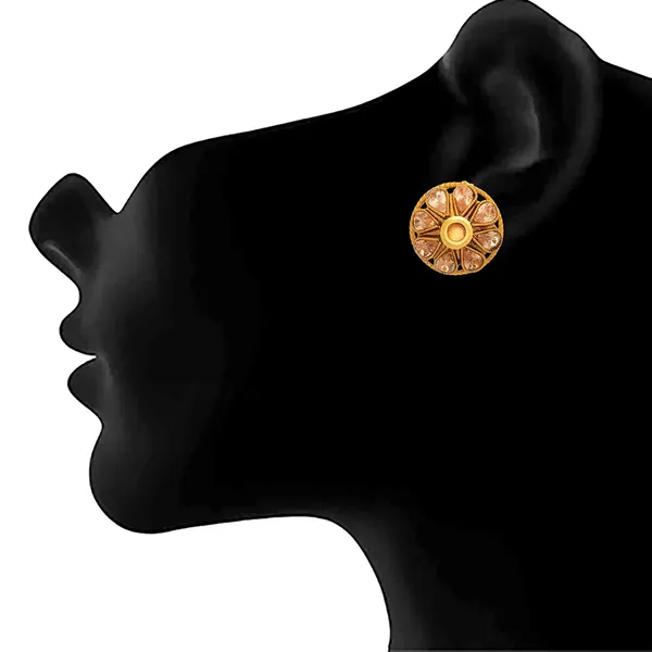 Champagne Diamonds 1 Gm Gold Plated Cz American Diamond & Kundan Earrings