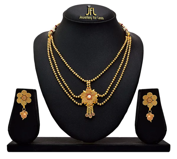 JFL - Traditional Ethnic One Gram Gold Plated Diamond Designer Necklace Set With Earrings