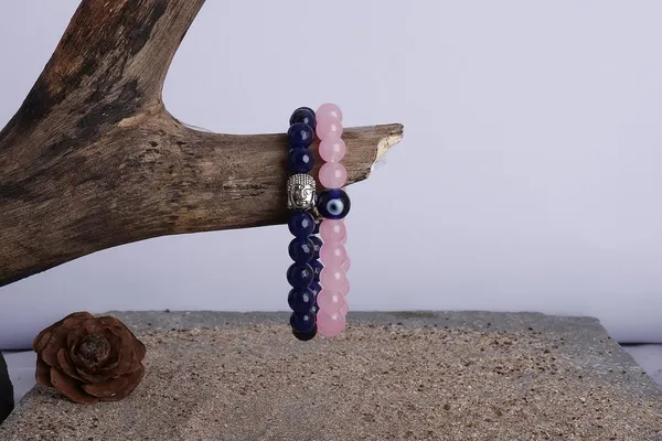 Combo Of 2 Pcs 8Mm Reiki Natural Onyx Baby Pink & Navy Blue Bead Handcrafte..More