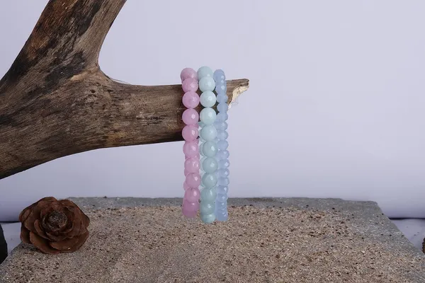 Combo Of 3 Pcs 8Mm Reiki Natural Glass Faceted Pastel Blue Crystal With Bab..More