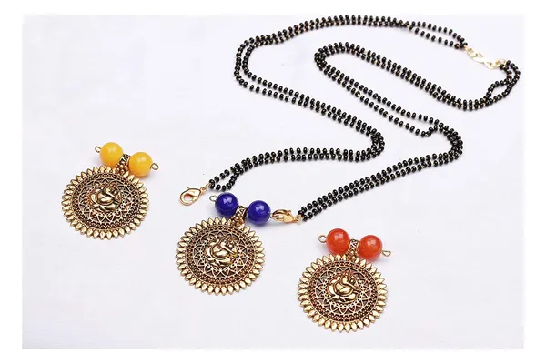 Combo Of Multi Bead And Gajamukha Oxidise Pendant With Gold Plated Black Be..More