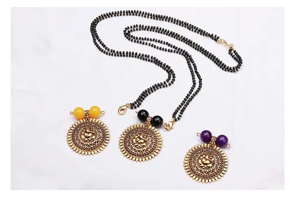 Combo Of Multi Bead And Gajamukha Oxidise Pendant With Gold Plated Black Be..More