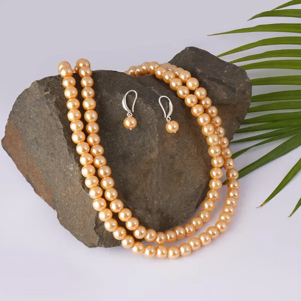 Combo Silver Plated Imitation 8Mm Round Pearl Double Strand Necklace Set Mo..More