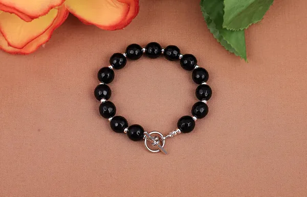 Contemporary Black Semi Precious Onyx Stone 10 Mm Round Bead Natural Gemsto..More