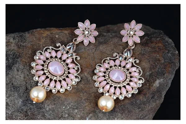 Contemporary Gold Tone Polki Stone Studded With Pearl Drop Dangler Earrings..More