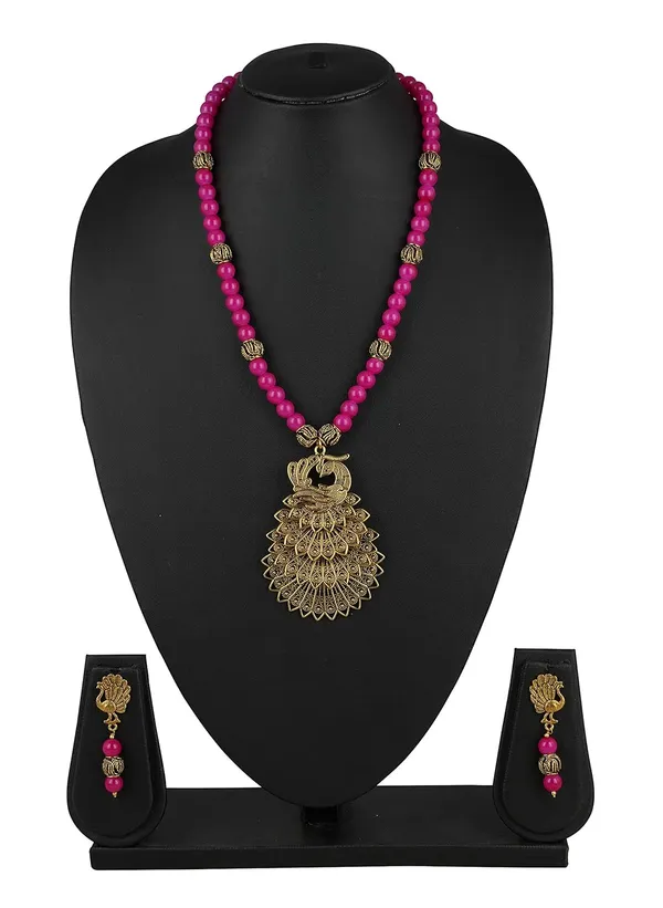 Contemporary Handcrafted Peacock German Gold Plated Oxidized Beaded Necklac..More