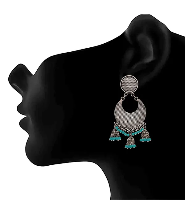 Cyan Handmade German Silver Plated Oxidised Chandbali Earring