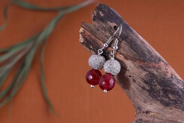 Cz Zircon American Diamond Ball Earrings With Semi Precious Agate Bead For ..More