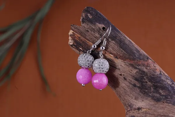 Cz Zircon American Diamond Ball Earrings With Semi Precious Agate Bead For ..More